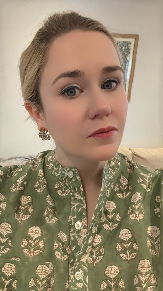 Sample Green Block Print Women's Shirt - Size Medium - 1 LEFT