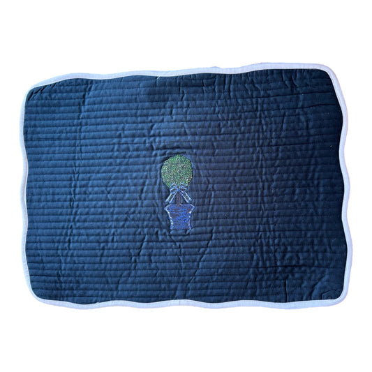 Sample Embroidered Rectangular Quilted Chinoiserie Topiary Placemat - 1 LEFT