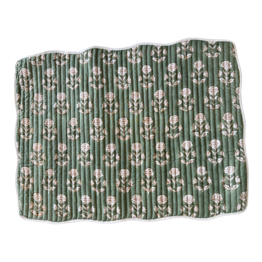 Sample Reversible Green Rectangular Block Printed Reversible Placemat - 1 LEFT