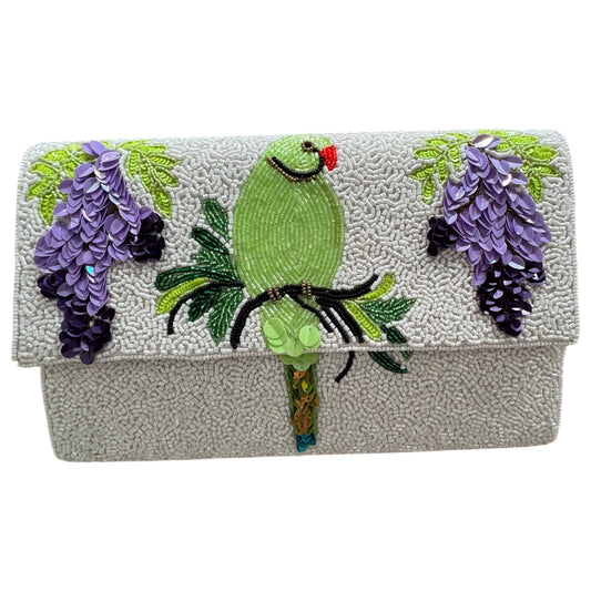 Parakeet & Wisteria London Beaded Clutch Bag