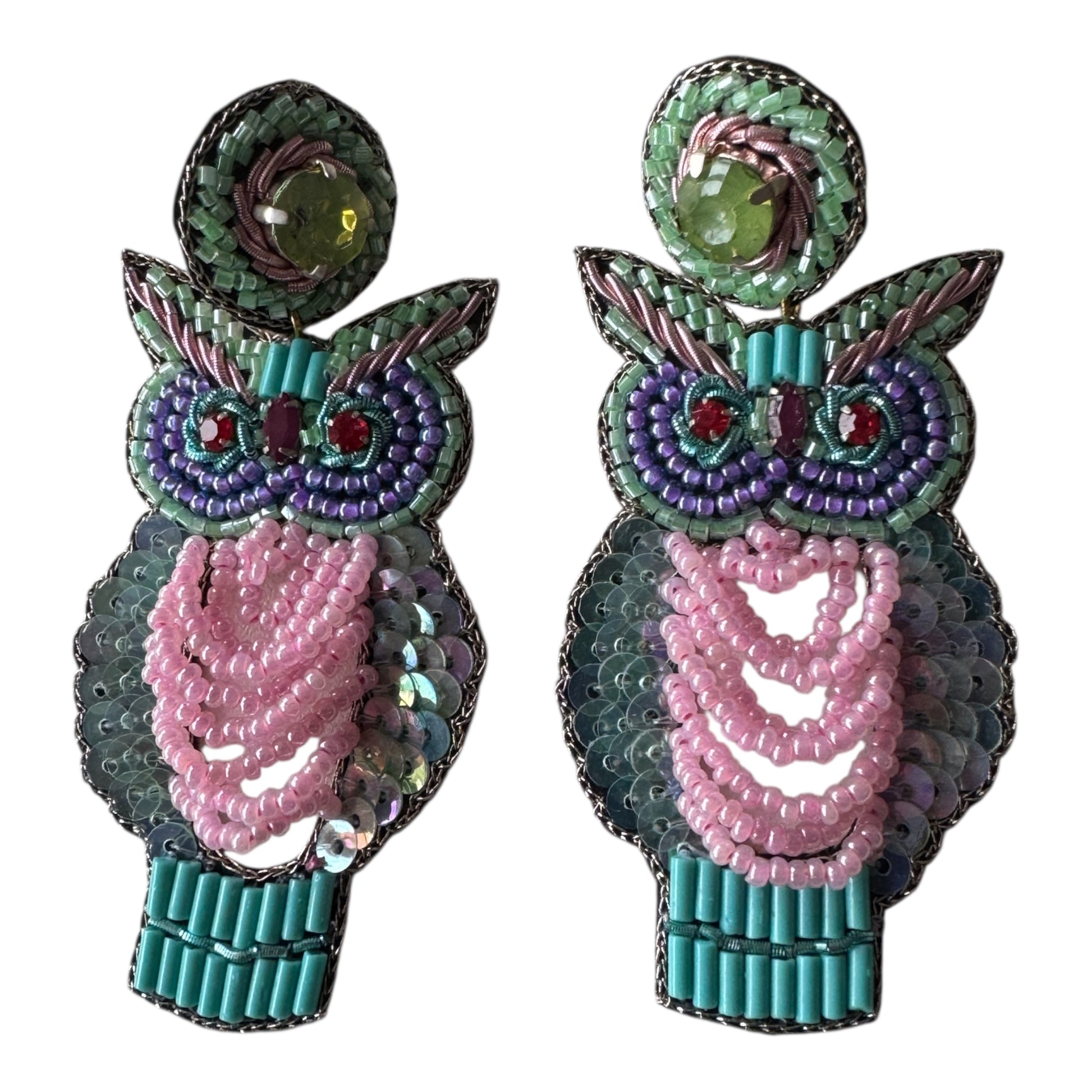Beaded Pink & Blue Owl Earrings - LAST ONE!