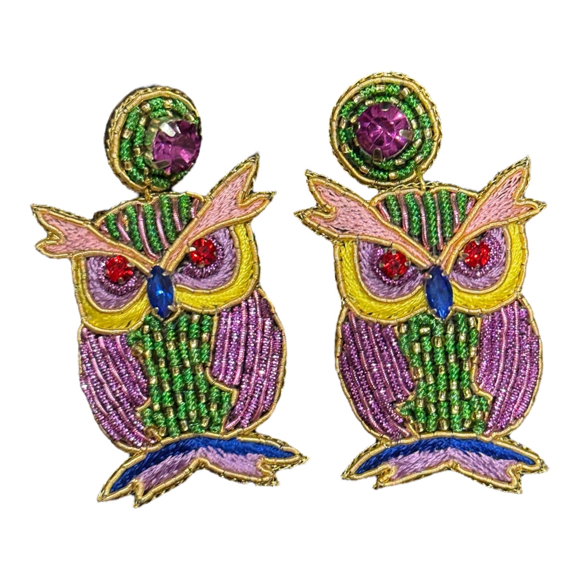 Jeweled Owl Earrings (Multi) - LAST ONE!