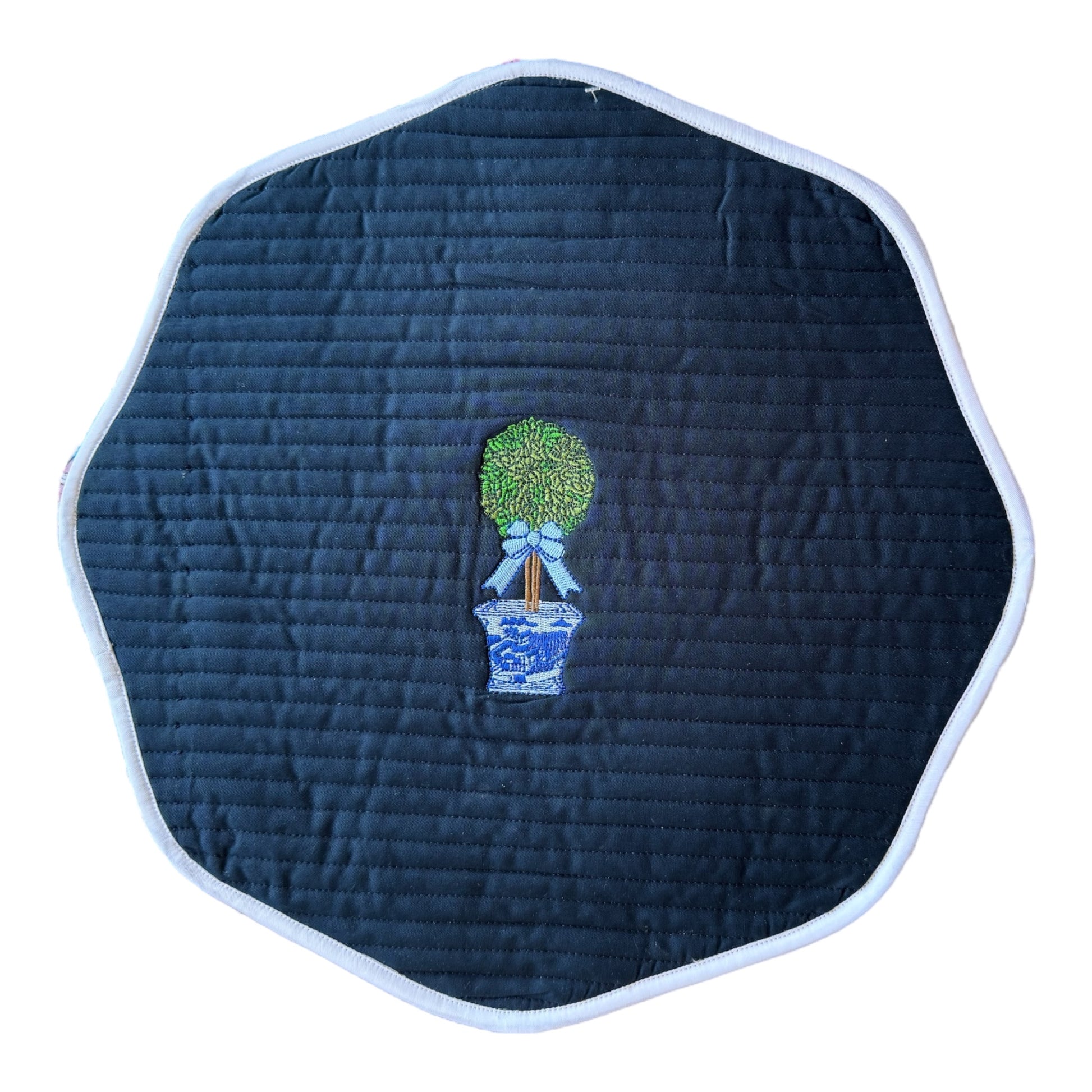 Sample Embroidered Round Quilted Chinoiserie Topiary Placemat - 1 LEFT