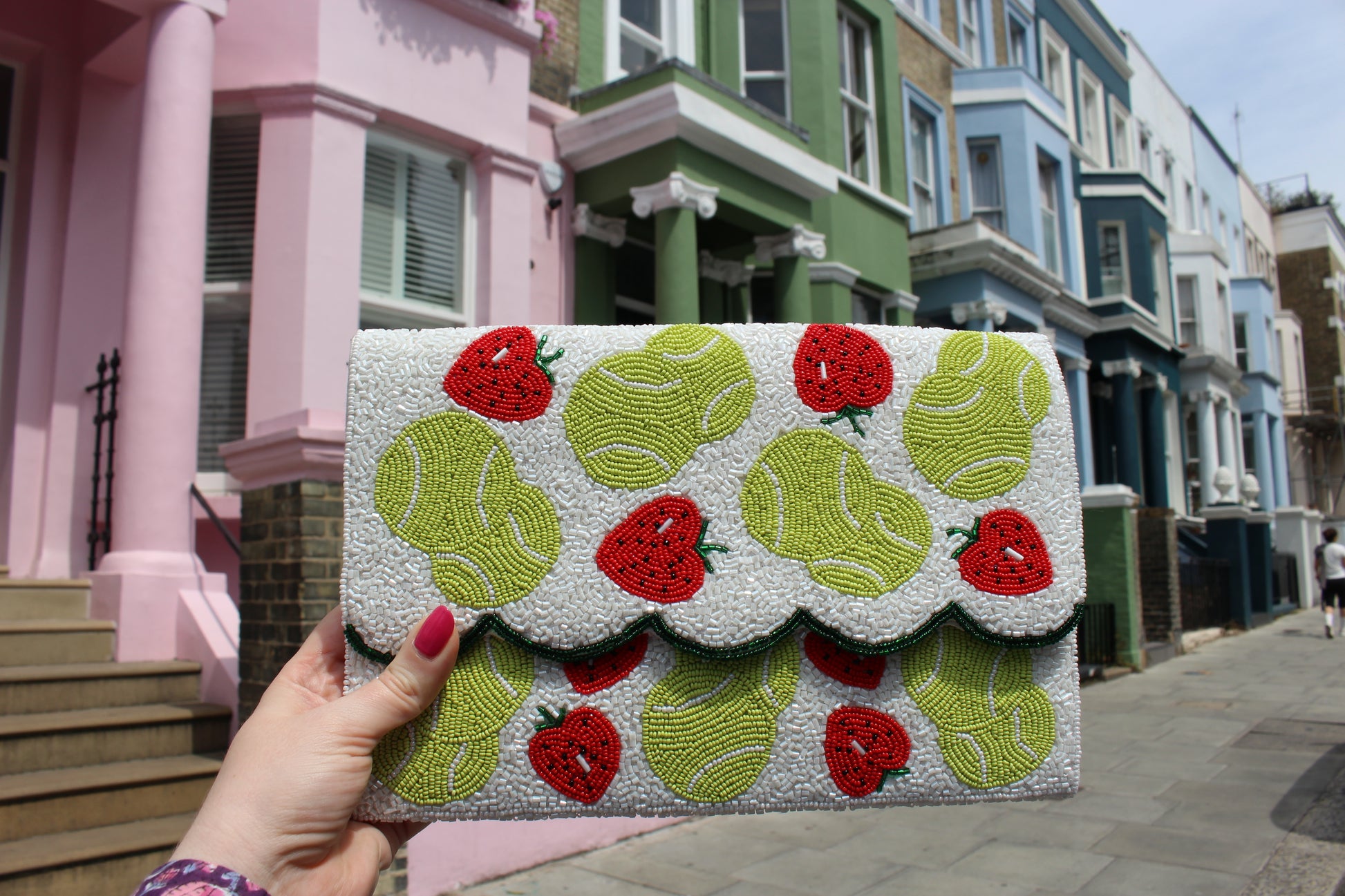 Our design is inspired by having strawberries and cream at British tennis tournaments in the summer and waking up as a child to watch "Breakfast at Wimbledon" in the USA.