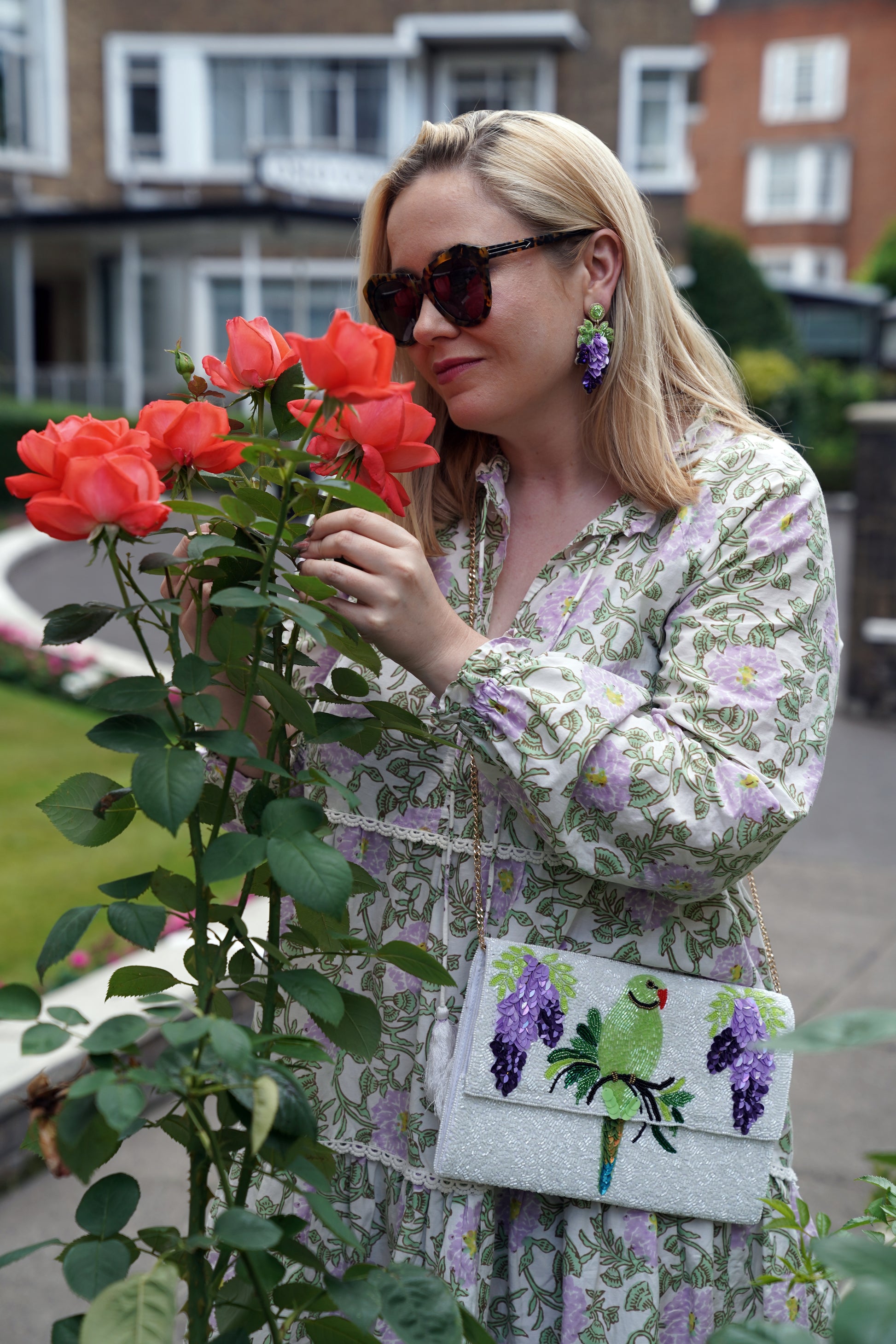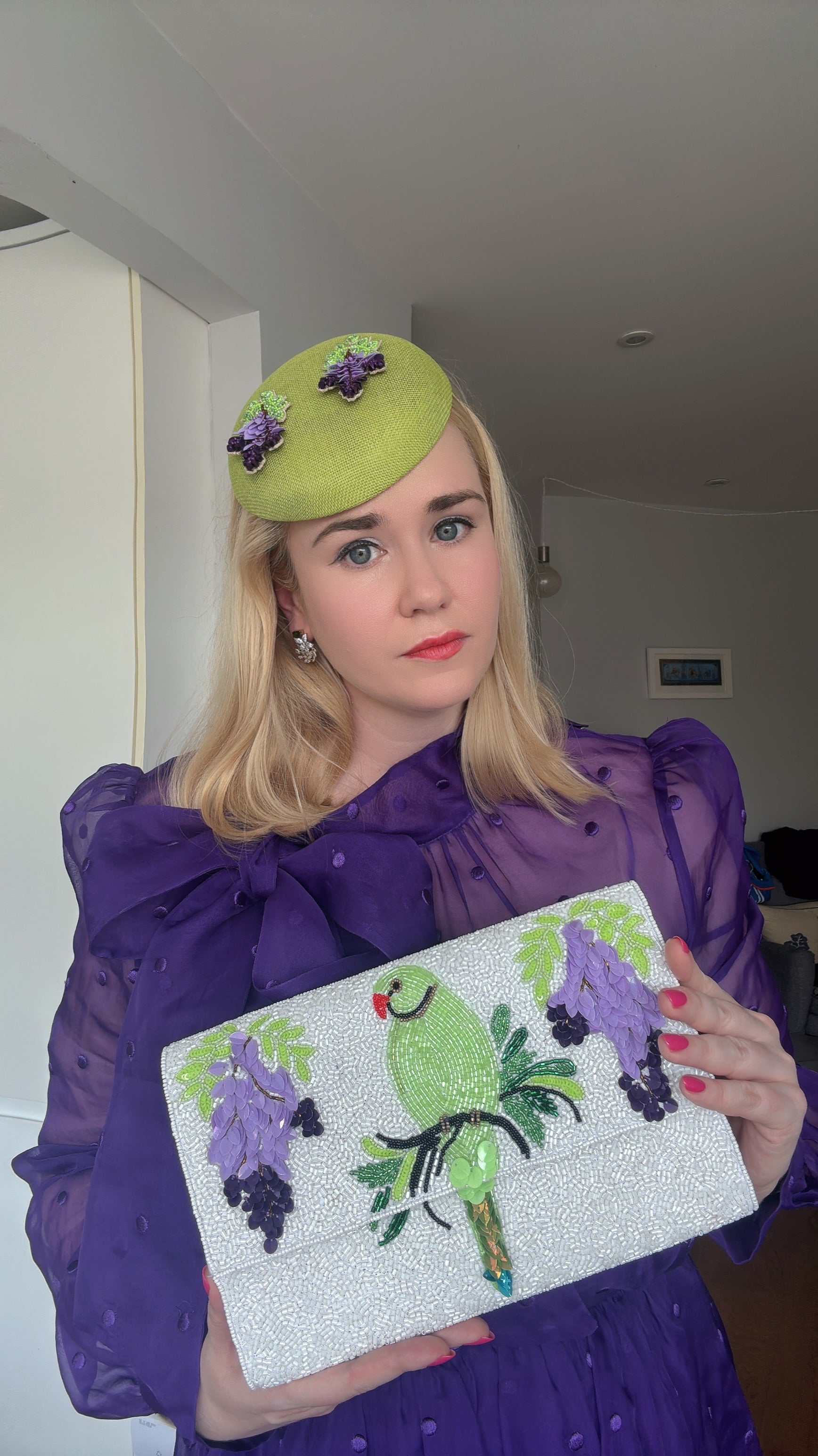 or 1.5" W x 2.5" L - Pair with our matching Parakeet & Wisteria London Beaded Clutch Bag